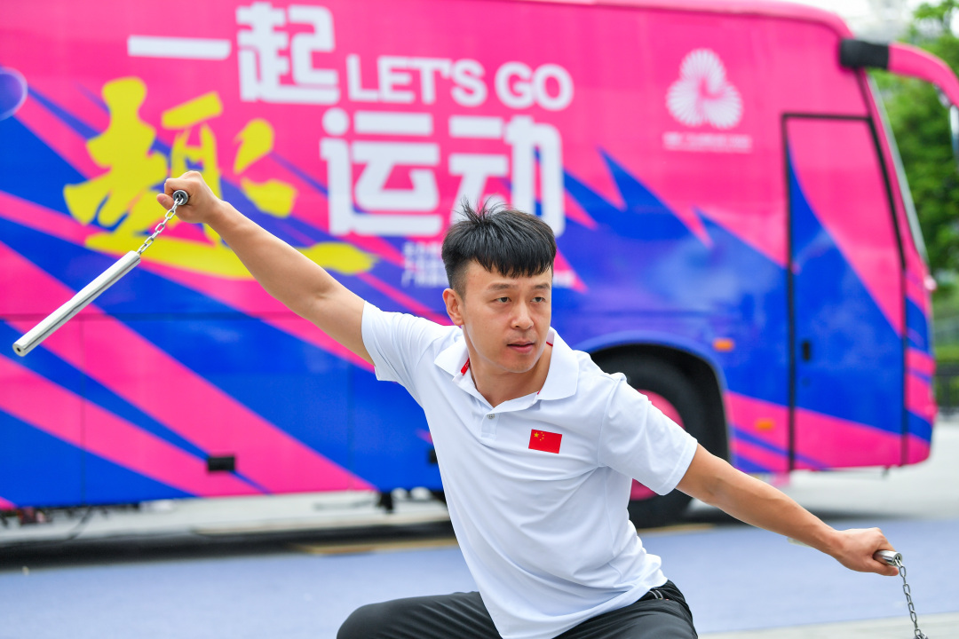启动仪式上,“一起‘趣’运动”全运主题巴士惊艳首发,成为全场焦点。这辆集文化展览、运动体验、趣味打卡于一体的主题巴士,车身及内饰巧妙融合十五运会和残特奥会特色元素与时尚设计,是创新全运文化传播模式的“移动地标”。巴士内设有流动全运博物馆、全运文创周边快闪店、移动擂台运动挑战赛等区域,通过“行走的宣传站”形式,深入广州城市肌理(地标、社区、企业、校园、乡村等),将全运理念、体育精神送到市民身边,打通全民全运“最后一公里”。它不仅是传播全运文化的“流动名片”,更是“体育惠民”“文化惠民”的生动实践,让全运盛会真正走近百姓身边,有效提升十五运会和残特奥会的知晓度、参与度和影响力,推动全民健身与全民健康深度融合。接下来,该巴士将在市内各区巡展,持续播撒全运热情。