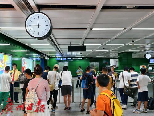 地铁十号线杨箕东站,乘客在拍照打卡。