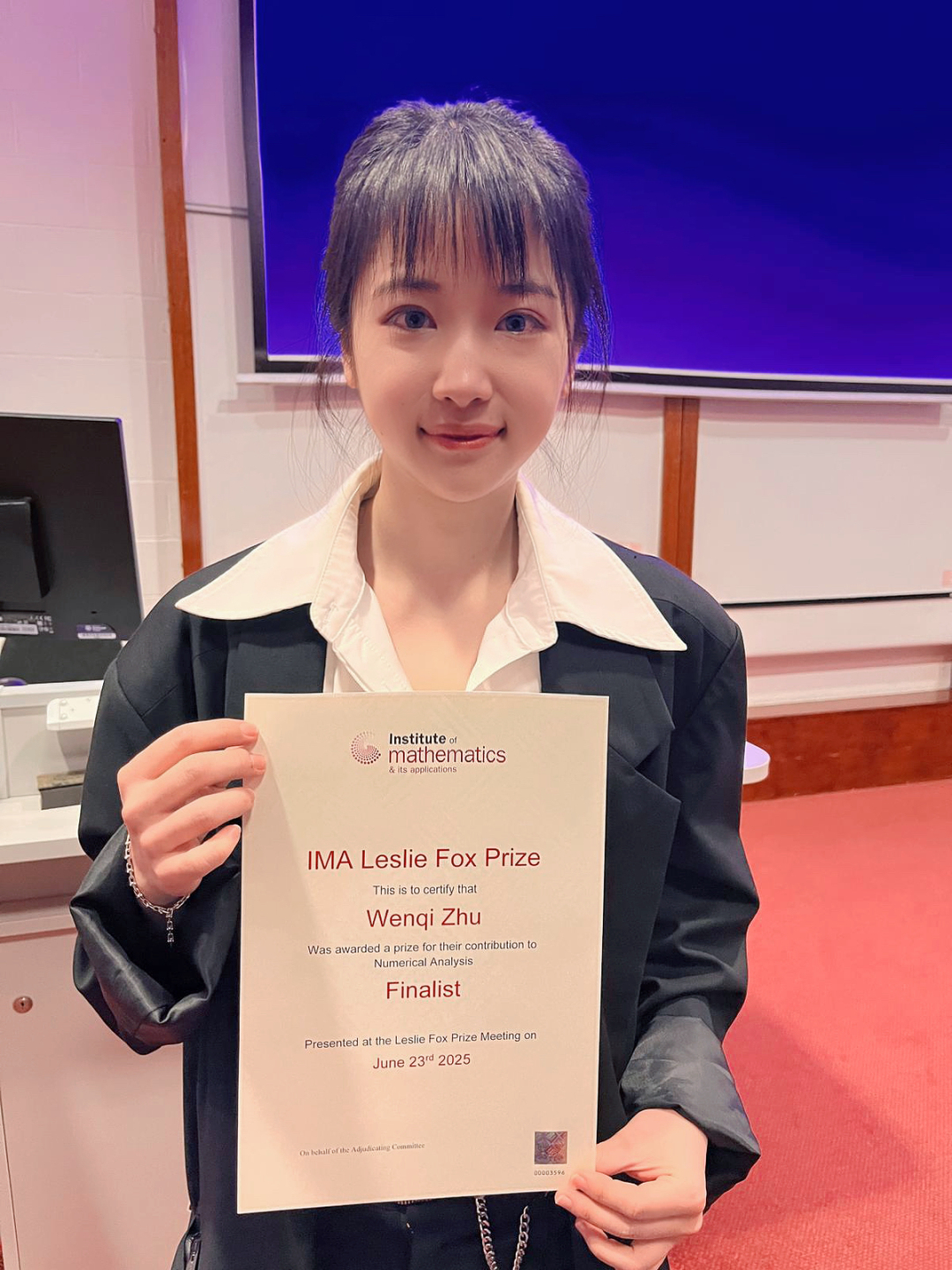 朱雯琪近日获得Leslie Fox Prize二等奖