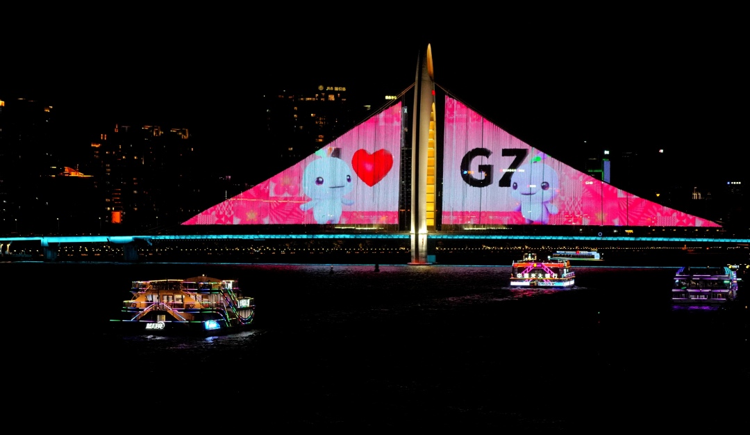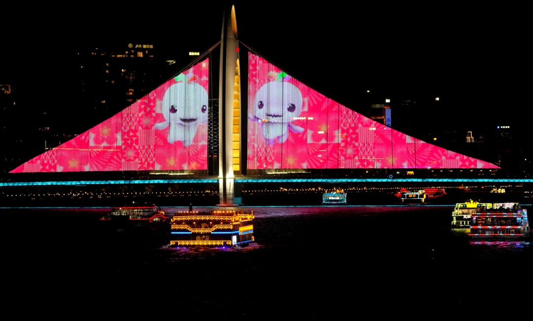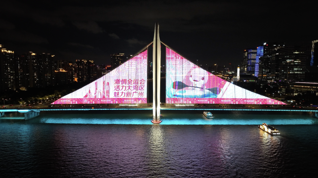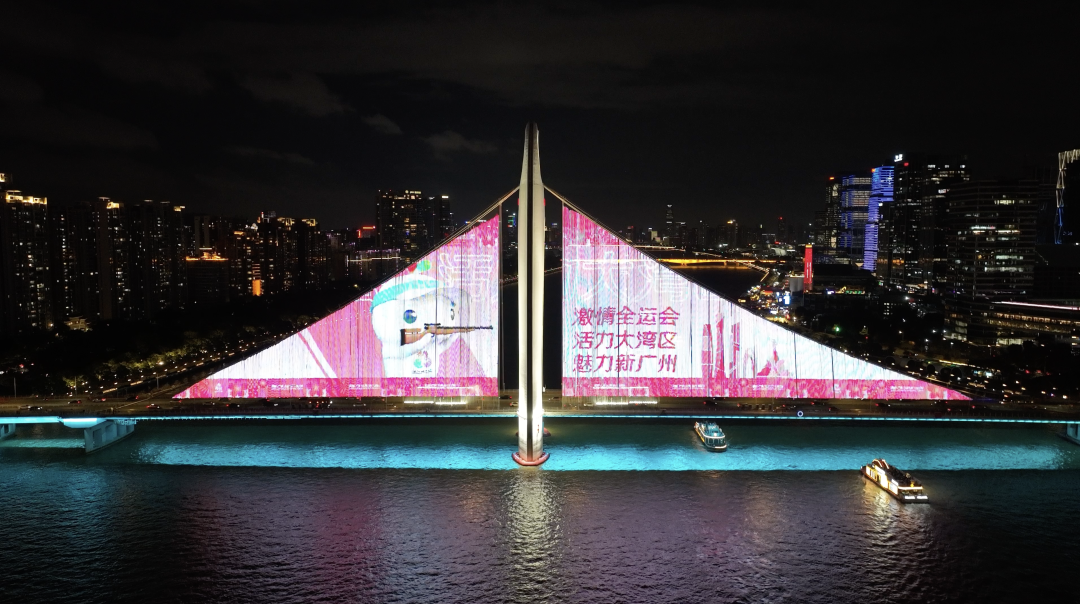 “喜洋洋”“乐融融”亮相猎德大桥!6月30日晚,猎德大桥亮灯播放十五运宣传画面,为即将于11月9日在广州开幕的十五运会加油添彩!激情全运会,活力大湾区,魅力新广州,十五运等你来!