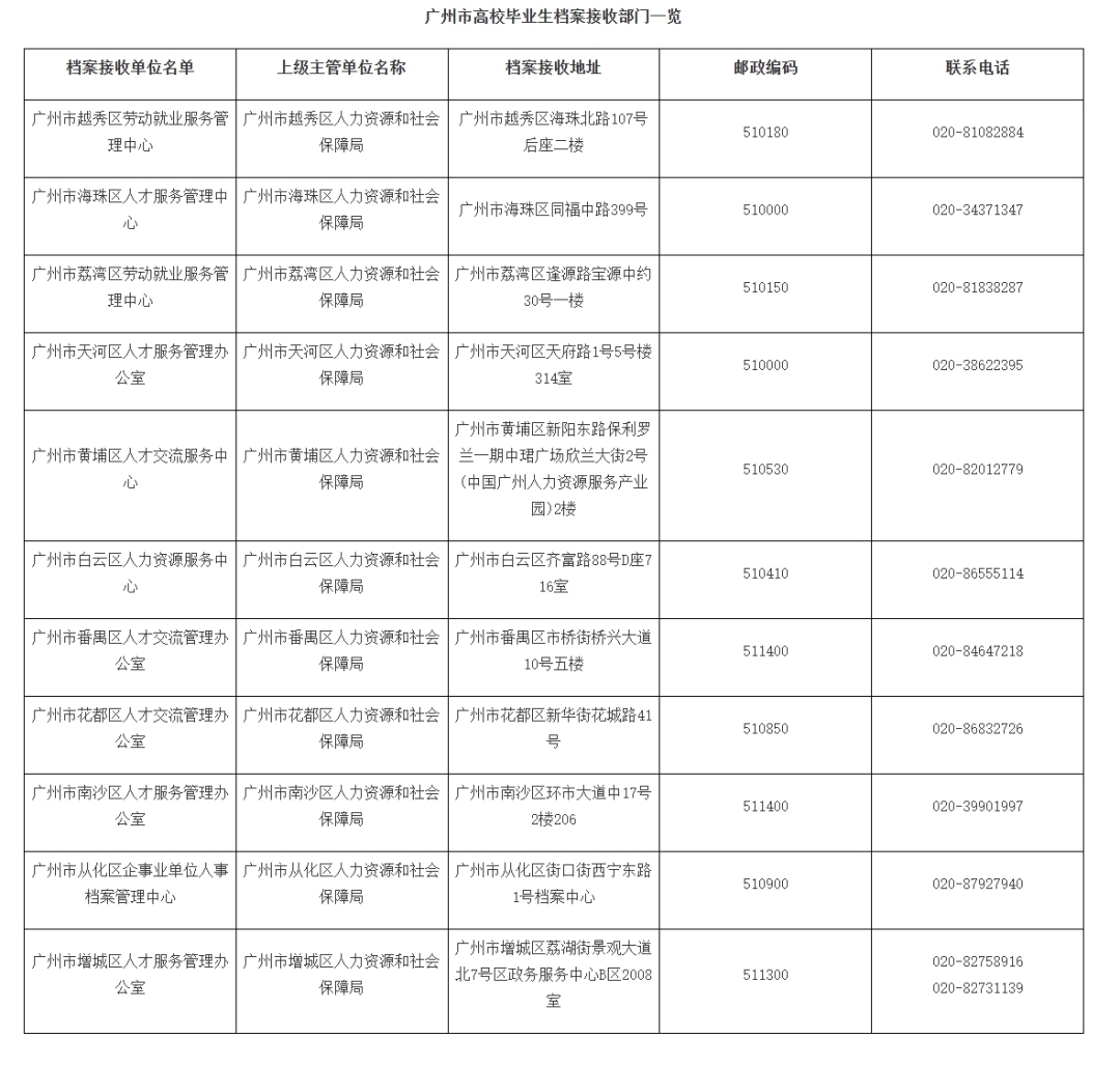 对于毕业前尚未落实就业单位的广州生源毕业生,档案接收单位为户籍地所在区公共就业服务机构。档案由毕业院校通过机要通信、专人送取或邮政特快专递的方式寄送至户籍地所在区公共就业服务机构。
