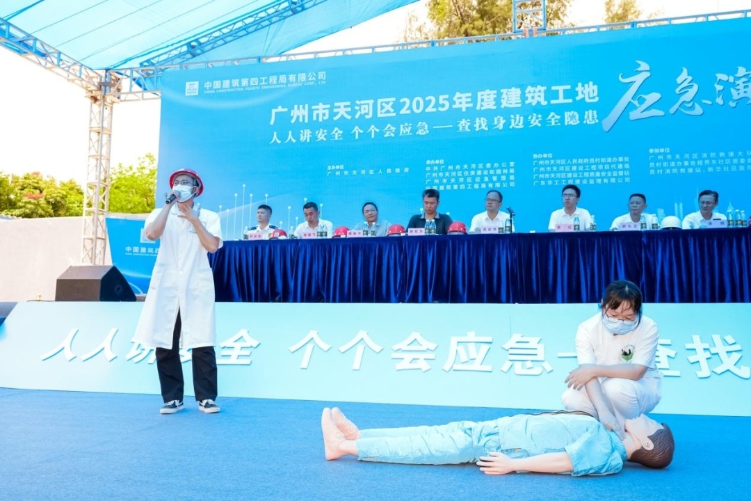 近日,2025年广州市天河区房屋建筑工程“安全生产月”和“安全生产广州行”应急演练观摩交流活动在中建四局天河区少年宫新校区建设工程项目举行。天河区及相关单位负责人共计200余人参加活动。