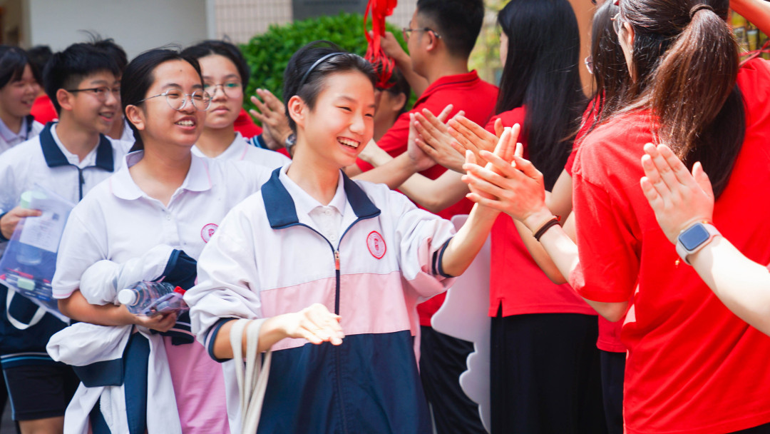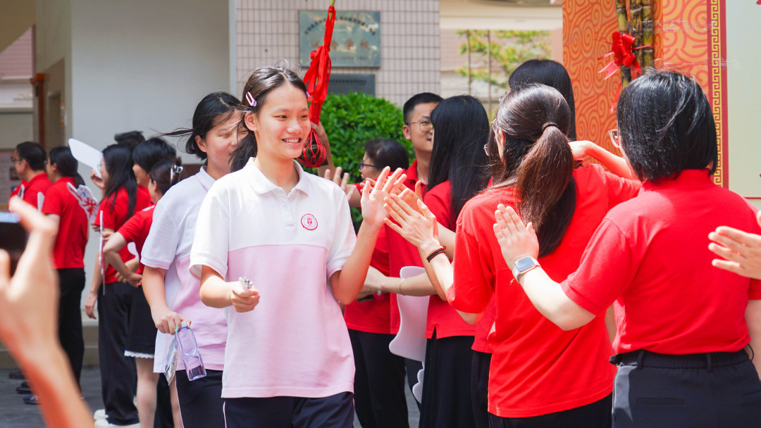 人生的首次“大考”,击掌送考的仪式必不可少。在位于顺德区大良街道的顺德一中外国语学校,下午首门科目开考前,该校举行热闹且特别的送考仪式。
