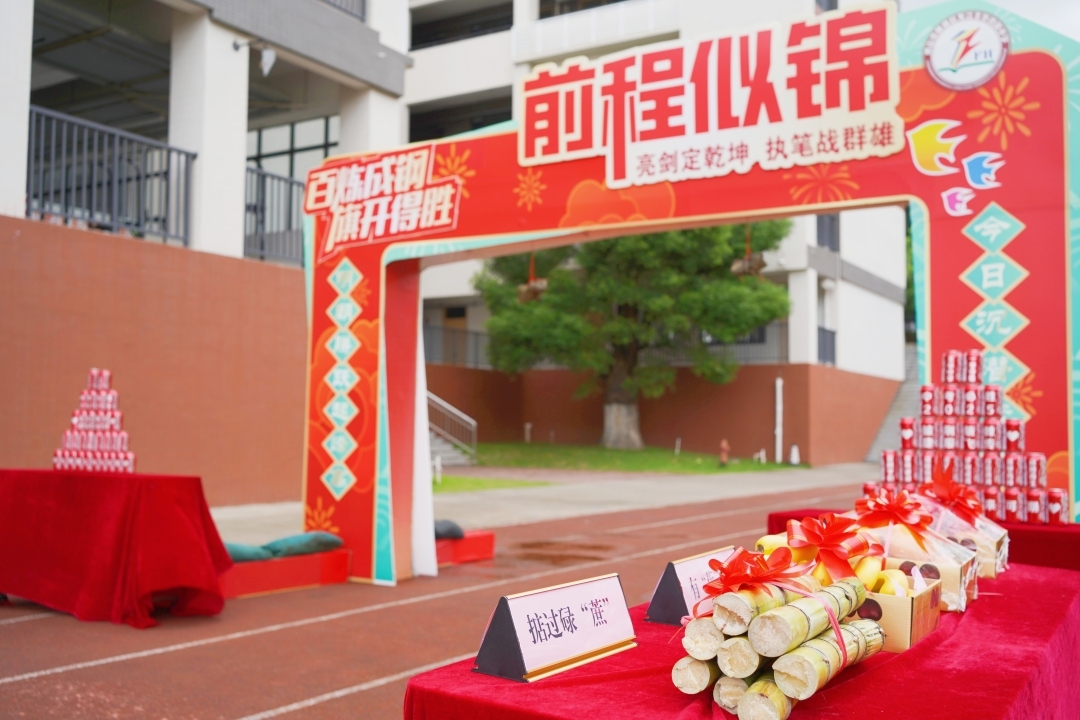 在龙江镇的丰华中学,除了精心设置了“龙门”,该校还准备了饱含深意的“吉祥果品”静候学子——金橙期许“心想事成”,蕉香祝愿“有朝一日功成”,翠蔗寓意“学业节节高升”,红苹守护“一路平安顺利”,糯粽饱含“今朝一举高中”。每一份甜蜜,都诉说着最真挚的期许。