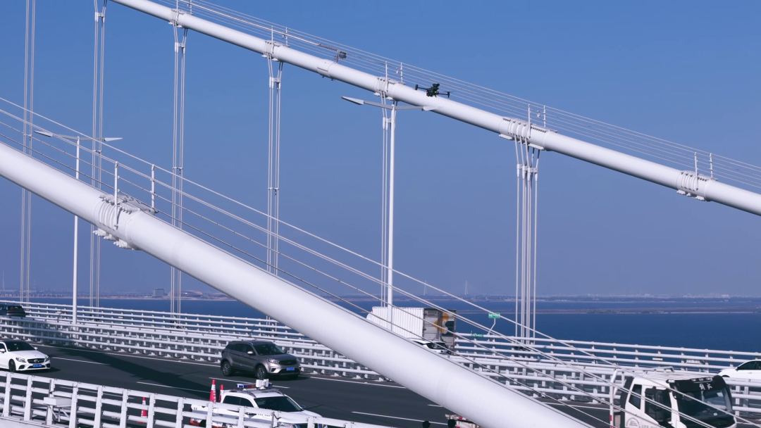 “我们与拯救单位实行‘驻点+巡查’双循环模式,在全线设置了8个应急驻勤点,采取逆时针方式联动,实现全线高效的事故处置和快捷支援。”深中通道路政大队长黄晓红说,“我们对易堵点实施‘一堵点一方案’,在车流高峰时段利用自动化无人机巡航装备进行巡查和车流疏导,保障整体通行秩序良好。”