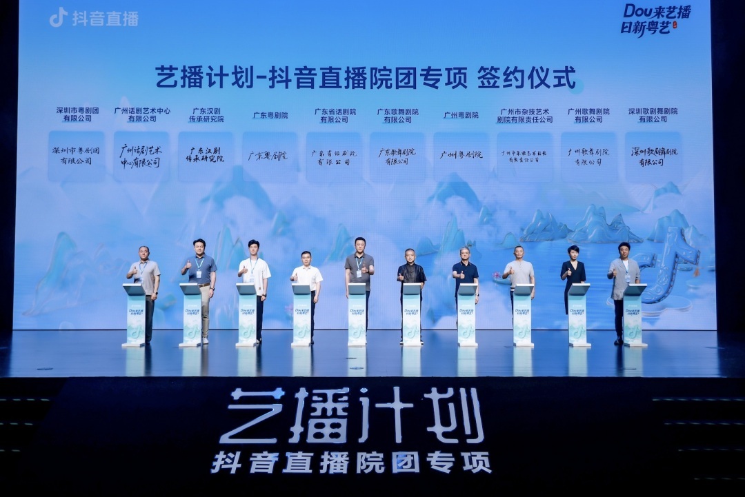 6月30日,来自广东省的37家文艺院团齐聚广州粤剧院,参与“DOU来艺播·日新粤艺”直播培训,现场,广东粤剧院、广州话剧艺术中心有限公司、海丰县白字戏艺术传承中心等19家广东各级文艺院团正式签约加入“艺播计划-抖音直播院团专项”。