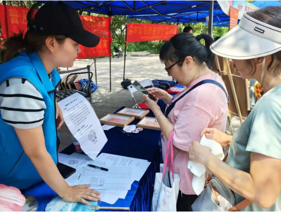 现场“六榕公益义卖区”,由志愿者制作的非遗染扇、拓印、徽章等义卖物品琳琅满目。社工与志愿者向社区居民介绍社区慈善基金善款的用途及意义。通过他们的详细介绍,居民了解到,这些善款将用于社区的公益项目,帮助辖内困难的居民群众,改善社区环境,提升居民生活品质。为方便居民捐赠,现场设有“爱心募捐通道”,居民可直接扫码,为社区慈善事业贡献一份力量。