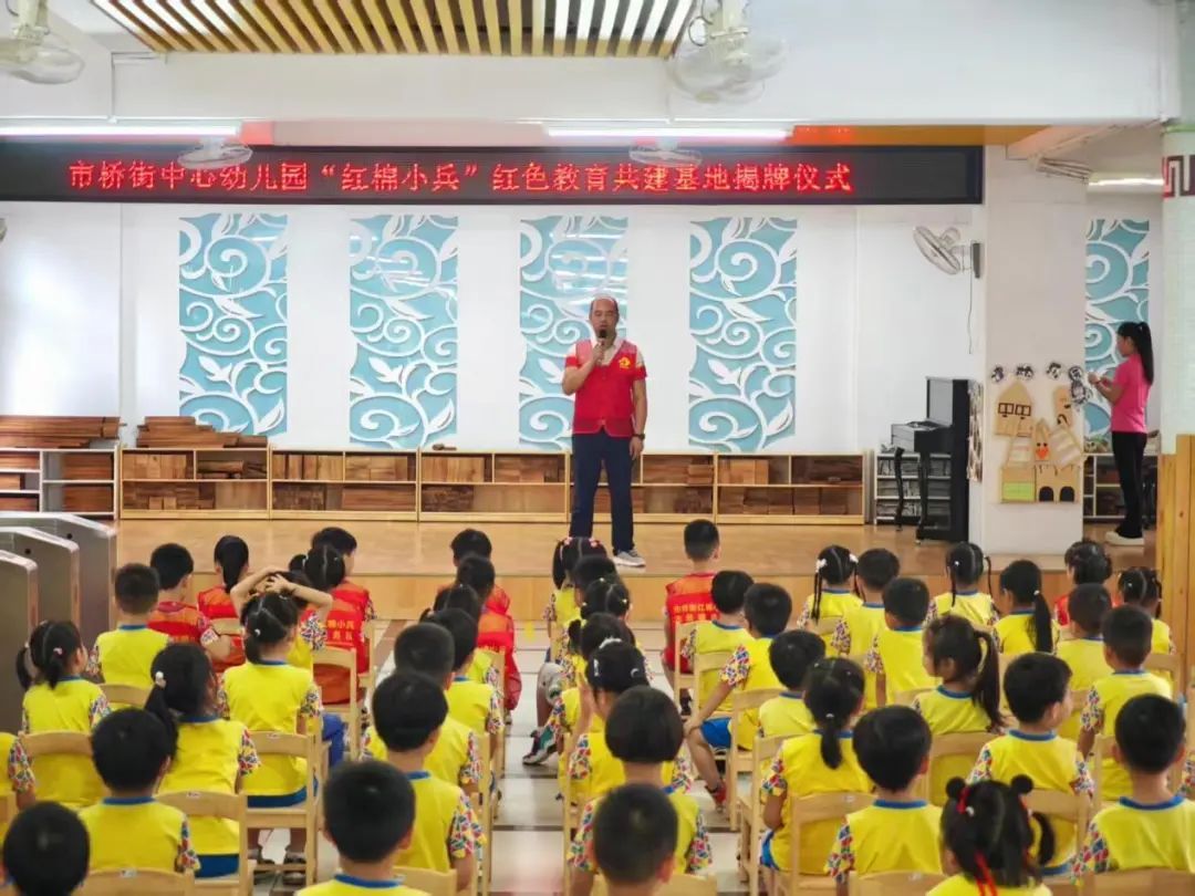 6月30日上午,市桥街红棉小兵教育实践基地授牌仪式在市桥街中心幼儿园举行。市桥街党工委委员、武装部部长刘刚为市桥街辖内首所幼儿园“红棉小兵”共建基地授牌,标志着该街国防教育体系进一步完善。