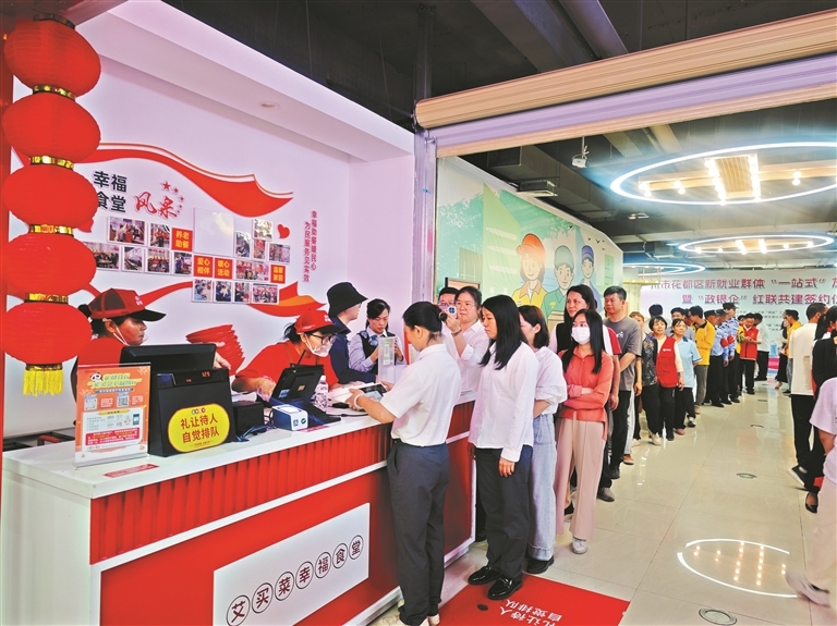 “10号工作室”,筑起党群连心桥。花都区在全国首创“10号工作室”联系服务群众新机制,以每月10日为集中服务日,区镇2100多名“两代表一委员”和律师党员编组直达基层开展活动。依托“10号工作室”常态化履职机制,狮岭镇“两代表一委员”了解到新业态劳动者“热饭难寻、歇脚无处”难题。聚焦群众急难愁盼,今年3月,新就业群体“一站式”友好商圈在狮岭镇揭牌,全市首个新就业群体幸福食堂正式开放。“很感谢党和政府的关怀,有这样一个食堂,让每天在外奔波的我们吃得安全又安心。”美团外卖骑手张亚飞点赞道。