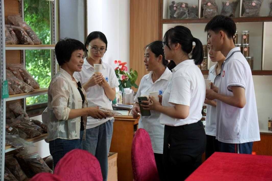 步入桂花潭瑶医瑶药发展有限公司,传统与创新交织的浪潮扑面而来。董事长刘卫娥引师生穿行于草药种植基地,翠绿的药材随风轻摇;车间内,瑶浴药包蒸腾着草本芬芳,墙上的“科农企一体化”发展图谱跃然眼前——从深山采撷到研发提纯,从康养服务到文旅融合,一条产业链正唤醒沉睡的瑶药资源。