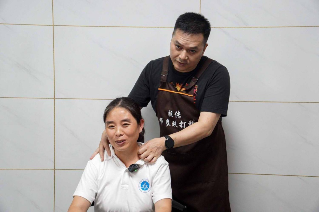 而在邓良正骨馆中,负责人邓善乐掌心运力,推拿按揉间辅以草药外敷,让体验的师生紧锁的眉宇渐舒。“每一味药都蕴含着瑶山千年的智慧”,学生温晓婷轻嗅艾草气息感慨道:“或许我们能成为这缕药香的守灯人。”