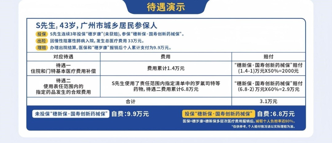 参保“穗新保·国寿创新药械保”的用户,在广州市指定试点医疗机构发生的、符合本保险责任且金额在5万元及以下的医疗费用,可享受出院时与医保、“穗岁康”同步的“一站式”结算服务。被保险人无须垫付费用及另行申请理赔,该特色结算服务极大简化了理赔流程,提升服务体验。
