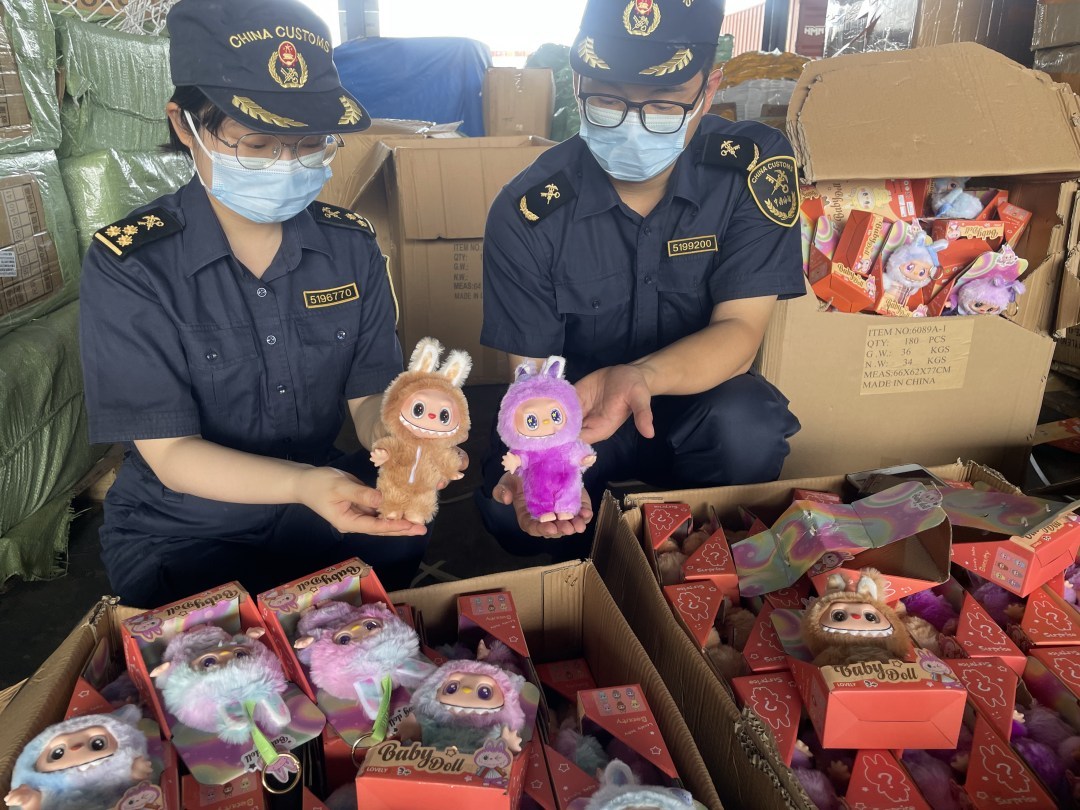 广州海关在出口货运渠道查获涉嫌侵权Labubu毛绒玩具880个