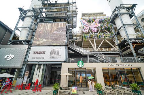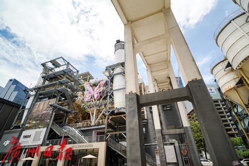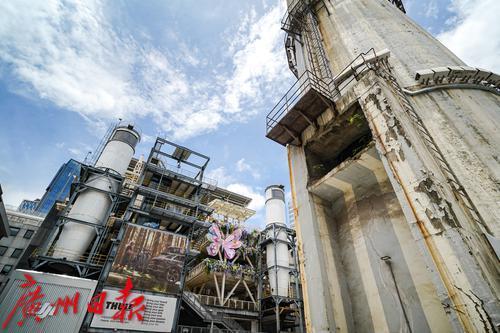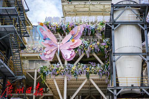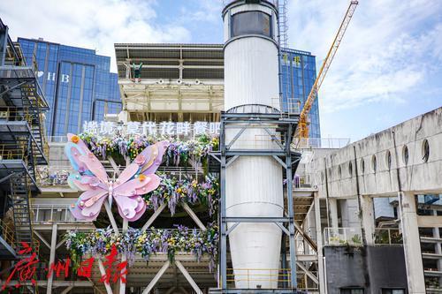 园区内的商家所做的装饰。钢铁之上绽放“鲜花”,飞来“蝴蝶”,工业遗产活化的生动体现。