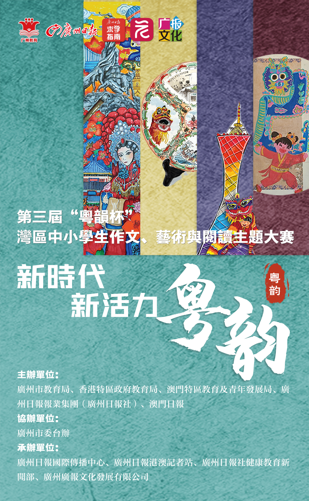 第三屆「粵韻杯」粵港澳大灣區中小學生作文、藝術與閱讀大賽港澳賽區已正式啟動,報名時間為2025年7月1日至7月30日。本屆賽事由廣州市委宣傳部、廣州市紀委監委指導,廣州市教育局聯合香港特別行政區教育局、澳門特別行政區教育及青年發展局、廣州日報社主辦,依託第十五屆全運會「灣區聯辦」契機,首次將賽區擴展至東南亞,吸引廣州和東南亞華人學子逾10萬人參與,致力打造粵港澳青少年文化創新標杆。