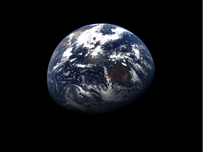 该地球彩色图由天问二号探测器的窄视场导航敏感器于2025年5月30日13点拍摄,经辐射校正、红绿蓝(558-631nm、500-573nm、434-477nm)三波段图像配准和彩色合成处理后制作而成。拍摄时器地距离约59万千米
