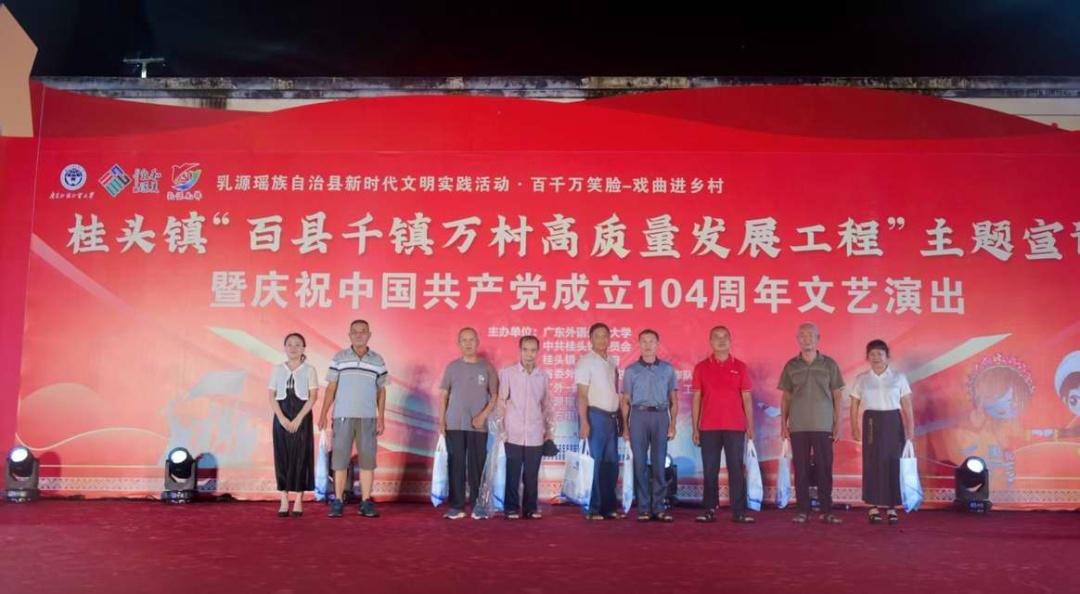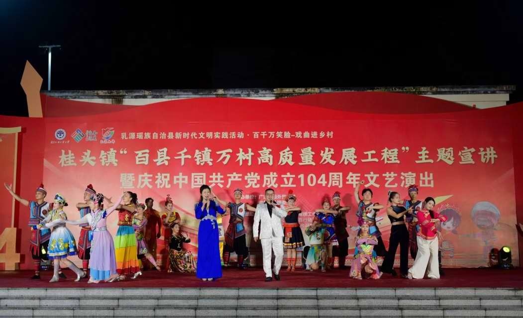 6月27日晚,韶关市乳源瑶族自治县桂头镇举办“百县千镇万村高质量发展工程”主题宣讲暨庆祝中国共产党成立104周年文艺演出,以“主题宣讲+文艺展演+惠民服务”的多元形式呈现,展示“百千万工程”三年初见成效的亮眼答卷。