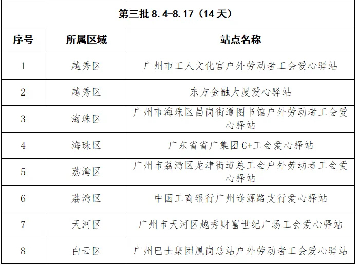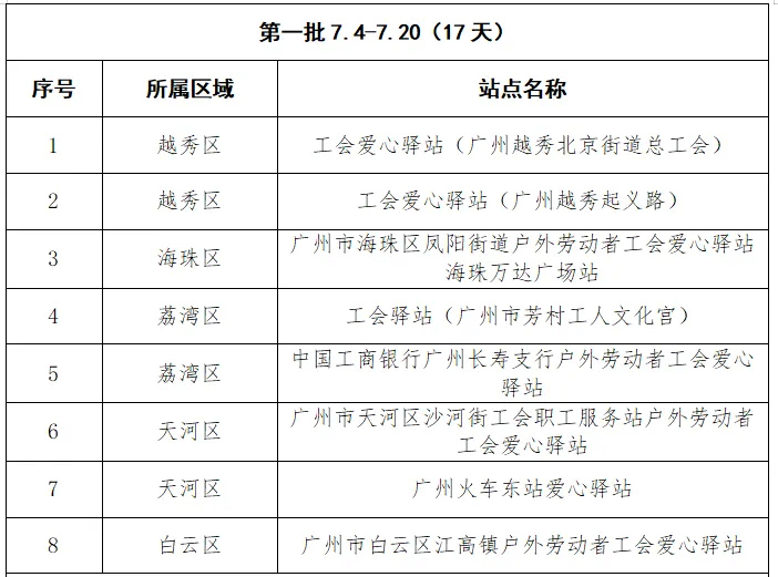 记者今日从广州市总工会获悉,今年广州市总工会“清凉一夏·致敬高温下的您”关爱行动继续开展,将在全市11区优选56家工会驿站派送8万多支雪糕,活动时间从7月4日开始,至10月12日结束,持续101天。