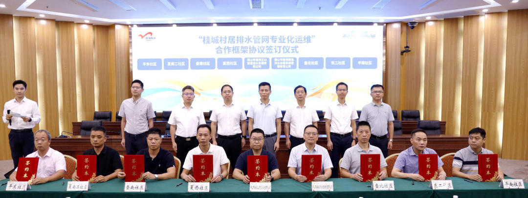 科学治水需要专业力量支撑,更需要社区基层的深度参与。本次大会举行了合作框架协议签订仪式。佛山市南海瀚泓、三山智慧岛水处理等专业企业与平南、东二、叠北等8个社区签订技术服务框架协议,推动治水技术精准下沉基层,提升管网运维效能。