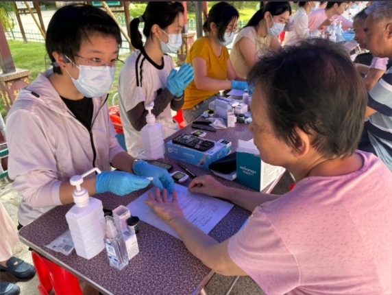 在慢病诊疗区,3名全科医生正忙碌地为患者调整用药方案、解答健康问题,重点关注高血压、糖尿病等慢性疾病。他们详细询问患者的病史、症状,结合检查结果,耐心为患者制定个性化的治疗方案;基础筛查区的9名医学生则为患者测量血压、血糖、视力等,并认真记录数据。对于检查中发现的异常值,学生们及时转介医生进行进一步诊断;中医惠民区则发放中成药,并讲解“非处方药”的使用注意事项。