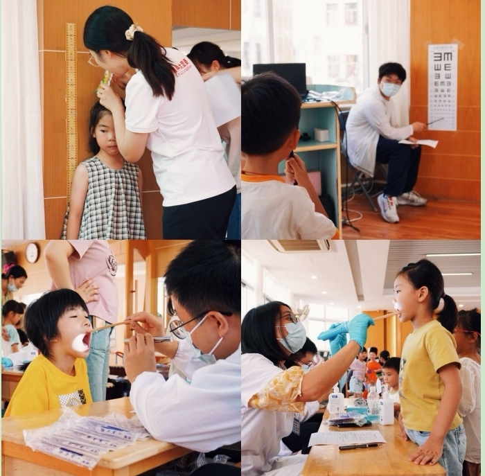 在义诊活动的间隙,团队还对235名儿童进行健康筛查,共回收有效健康筛查登记表227份,最大儿童年龄9岁,最小4岁。筛查结果显示,龋齿儿童81人,占比38.3%;双眼裸眼视力均小于5.0的儿童136人,占比59.9%;BMI偏轻儿童68人,占比29.9%;BMI超重儿童18人,占比7.9%。在筛查现场,医生和学生们分工协作,为孩子们进行龋齿检查、视力筛查、身高体重测量等项目。对于检查中发现的问题,及时向家长反馈,并提供专业的治疗建议和健康指导。同时,团队还为孩子普及口腔卫生、视力保护等知识,引导孩子们养成良好的健康习惯。