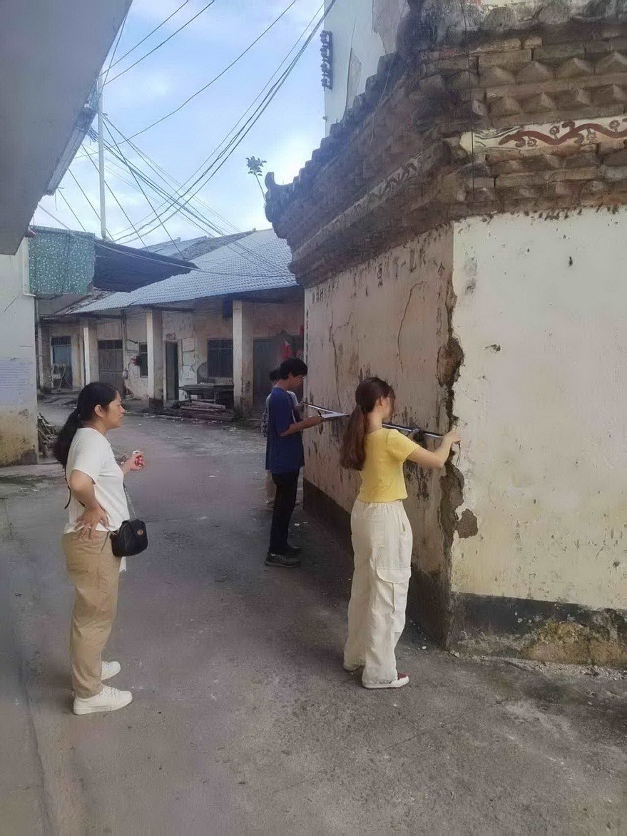连日来,师生们还投身于墩头古村的环境与建筑勘查测量工作中。他们穿梭在古村的大街小巷,进行素材拍摄、村民调研访谈,收集了大量的一手资料,为后续开展墩头古村建筑与蓝染工艺数字化建模、古村环境提升设计、文化旅游产品开发设计、非遗宣传等工作奠定了坚实基础。