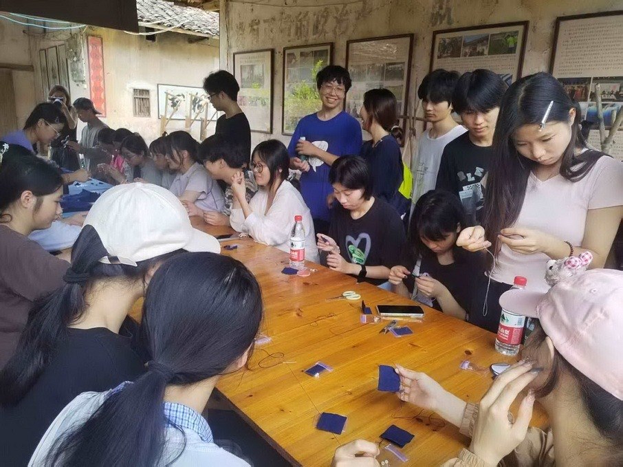 广州软件学院创意设计学院22名师生于近日奔赴河源市和平县彭寨镇华表村——墩头蓝织染绣的广东省非物质文化遗产所在地,师生们带来的“经纬共生,蓝映未来”环境设计成果展,为非遗保护与古建活化注入新活力。