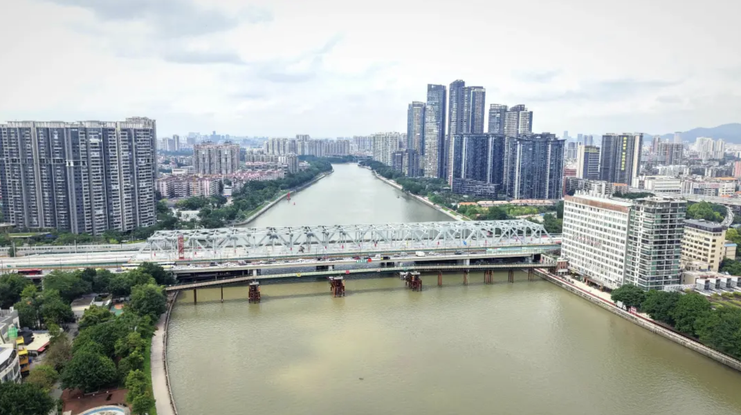 珠江西桥原址保留,在两侧新建桥梁跨越珠江白沙河,活化利用旧桥设置成为慢行观光通道。珠江东桥拆除后,在原址重建,桥位保留部分老桥墩。双桥烟雨景观得以保留,不仅缩短了一年建设工期,更规避了内环路拆除迁建的交通安全风险,珠江大桥这座百年工业遗存正焕发新生。