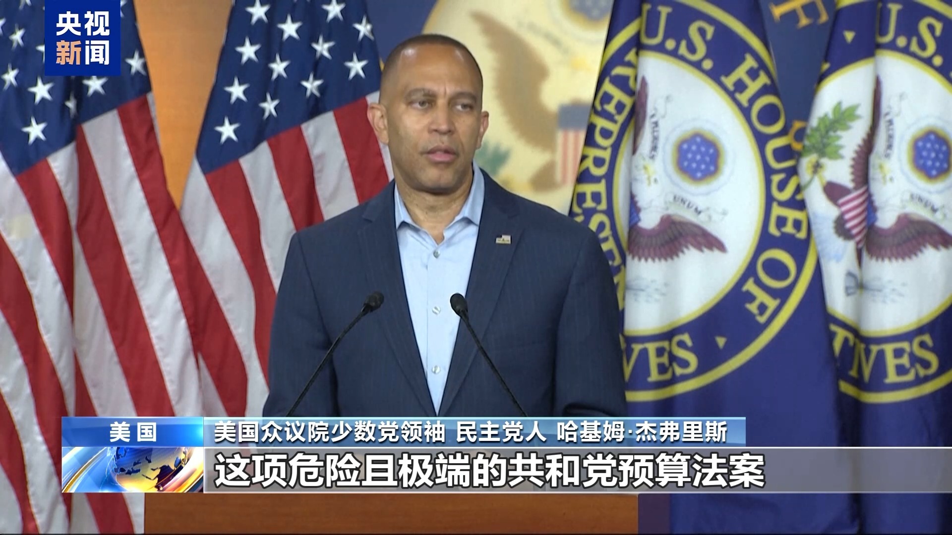 美国众议院少数党领袖 民主党人 哈基姆·杰弗里斯:这项危险且极端的共和党预算法案,将导致很多美国人因无法获得医疗保险而失去生命。众议院民主党人将在接下来的几个小时,将在今天、明天、本周乃至更久,竭尽全力阻止该法案成为法律。