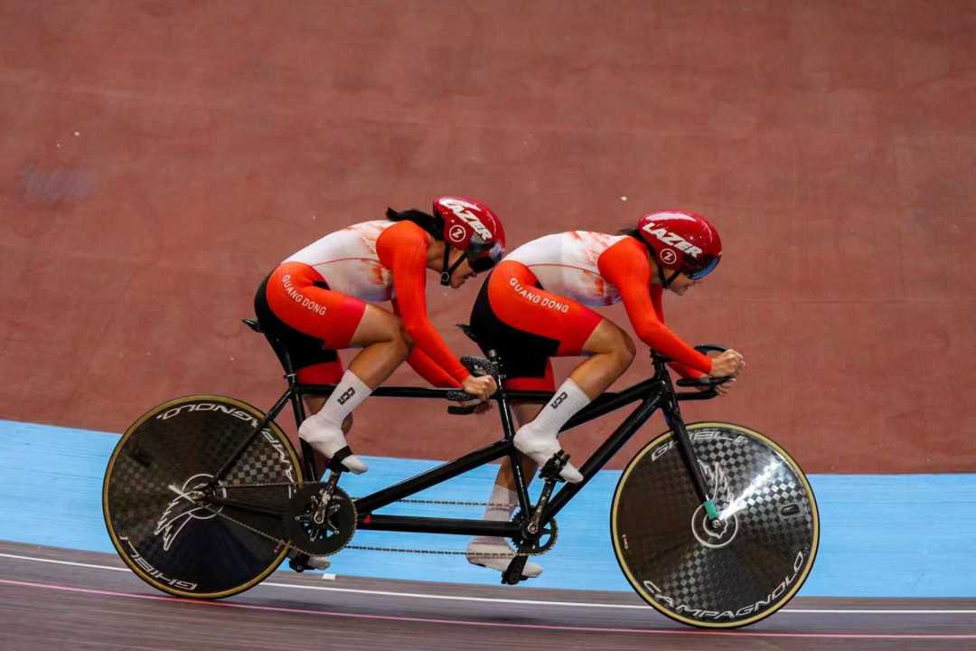 C级混合团体赛中,广东队以资格赛第一的成绩挺进金牌赛。在与山东队的激烈交锋中,叶依婷领骑第一圈,出发阶段就迅猛发力,完成后丝滑地从跑道外侧退出,冯锦华接替领骑,赖善章始终紧紧跟在他身后,直到进入第三圈,才借助跑道外侧坡度加速冲刺,单独完成第三圈。最终,广东队摘下金牌,创造了50秒078的全国纪录。