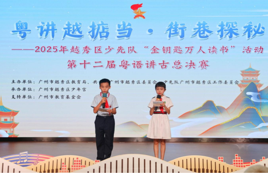 7月2日,“街巷探秘——2025年越秀区少先队‘金钥匙万人读书’活动第十二届粤语讲古总决赛”在越秀区少年宫壹号演艺厅举行。