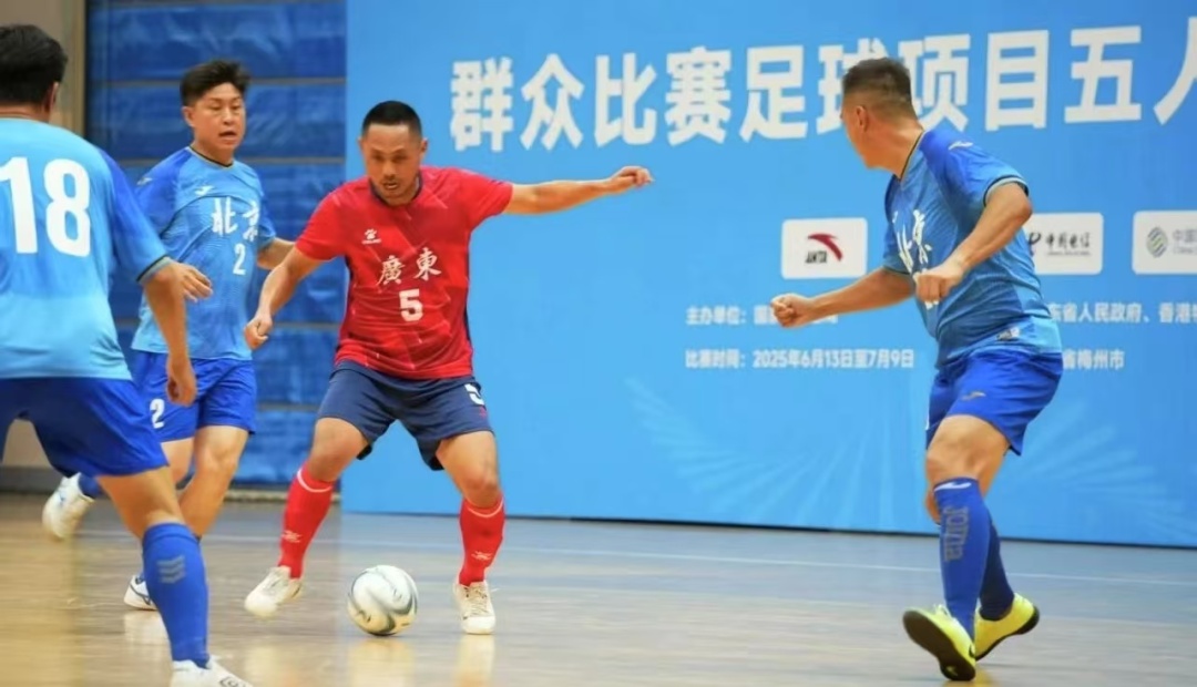7月3日,第十五届全国运动会梅州赛区群众比赛足球项目五人制老将组在梅县文体中心和剑英体育馆同时开赛。广东队在首轮以2比0击败北京队,收获开门红。