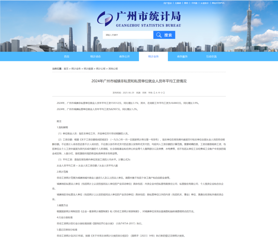 近日,市统计局发布了2024年广州平均工资情况,城镇非私营单位就业人员年平均工资159312元,同比增长3.1%。