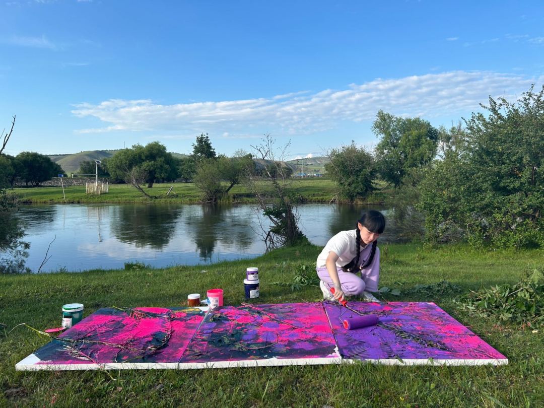 黄朱青子本次油画个展于6月26日至30日在日本东京举行。展出的主打作品为《印象·伊敏河》《印象·免渡河》等三联巨幅油画,灵感源自中国北方草原大自然的光影变化。本次展览以“印象流光影”为线索,展现了黄朱青子对自然、生命与时间的感悟,作品风格兼具东方意境与西方技巧,体现出强烈的个体情感与生态关怀。