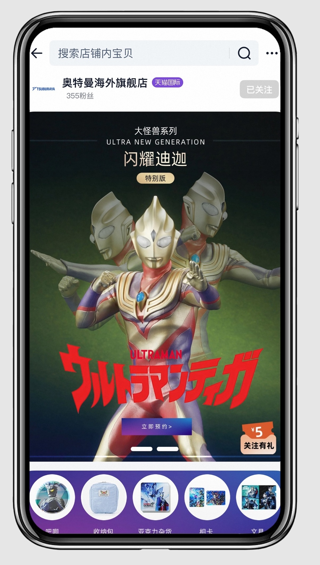 奥特曼入驻天猫国际后,将实现与日本市场同步的最新手办预定服务。旗舰店将定期公布新品手办,包括限定版、豪华版以及特别企划版。常规商品每月同步日本官网上新节奏,消费者无需代购渠道,就能第一时间拥有最新、最热门的奥特曼周边。