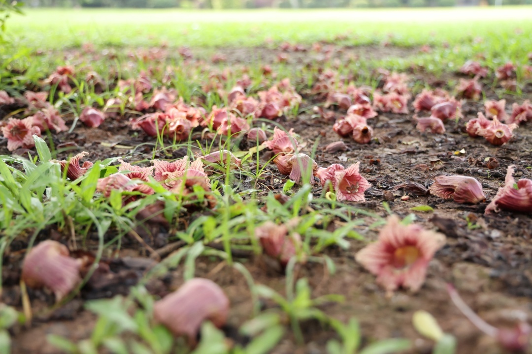 据介绍,叉叶木为紫葳科葫芦树属常绿乔木,原产于中美洲,其花朵遵循特殊的昼夜节律——每天傍晚5点后缓缓舒展花瓣,在夜色中散发淡淡清香,次日清晨便完成使命般凋落,满地落花形成天然的紫红色花毯。