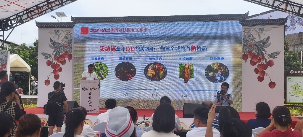 随着领导嘉宾共同推动启动装置,2025年清远佛冈荔枝温泉文旅季正式宣告启动!歌曲《送往长安的佛冈荔枝》悠扬的旋律,将现场气氛推向顶点。