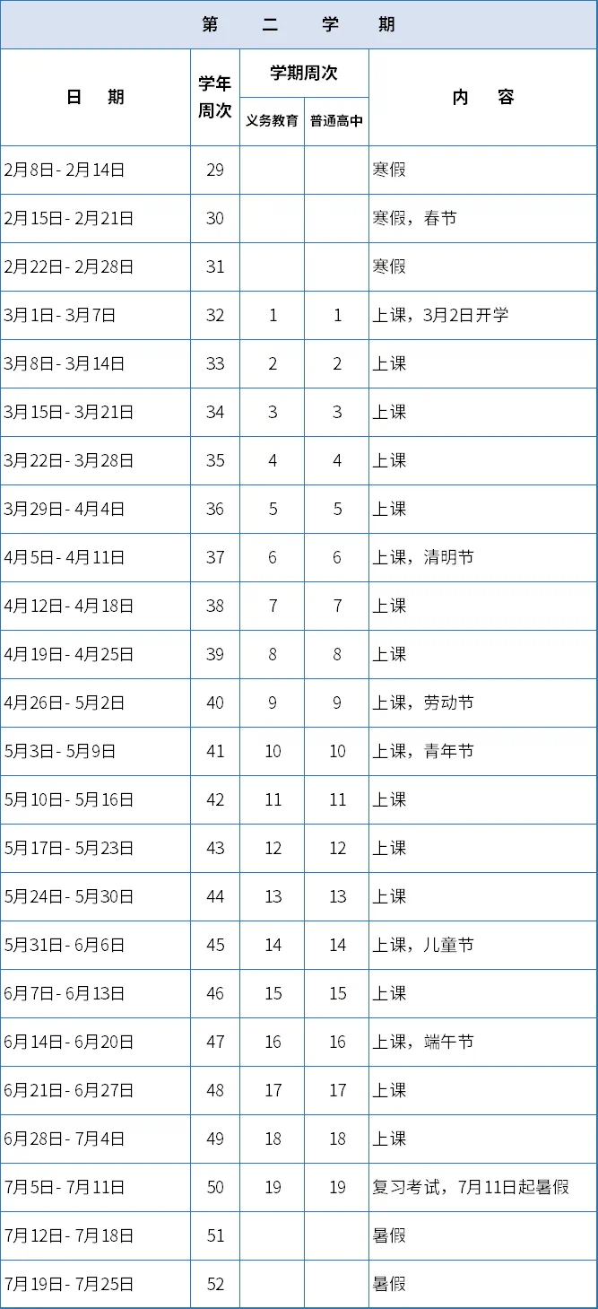 全日制普通中小学校校历