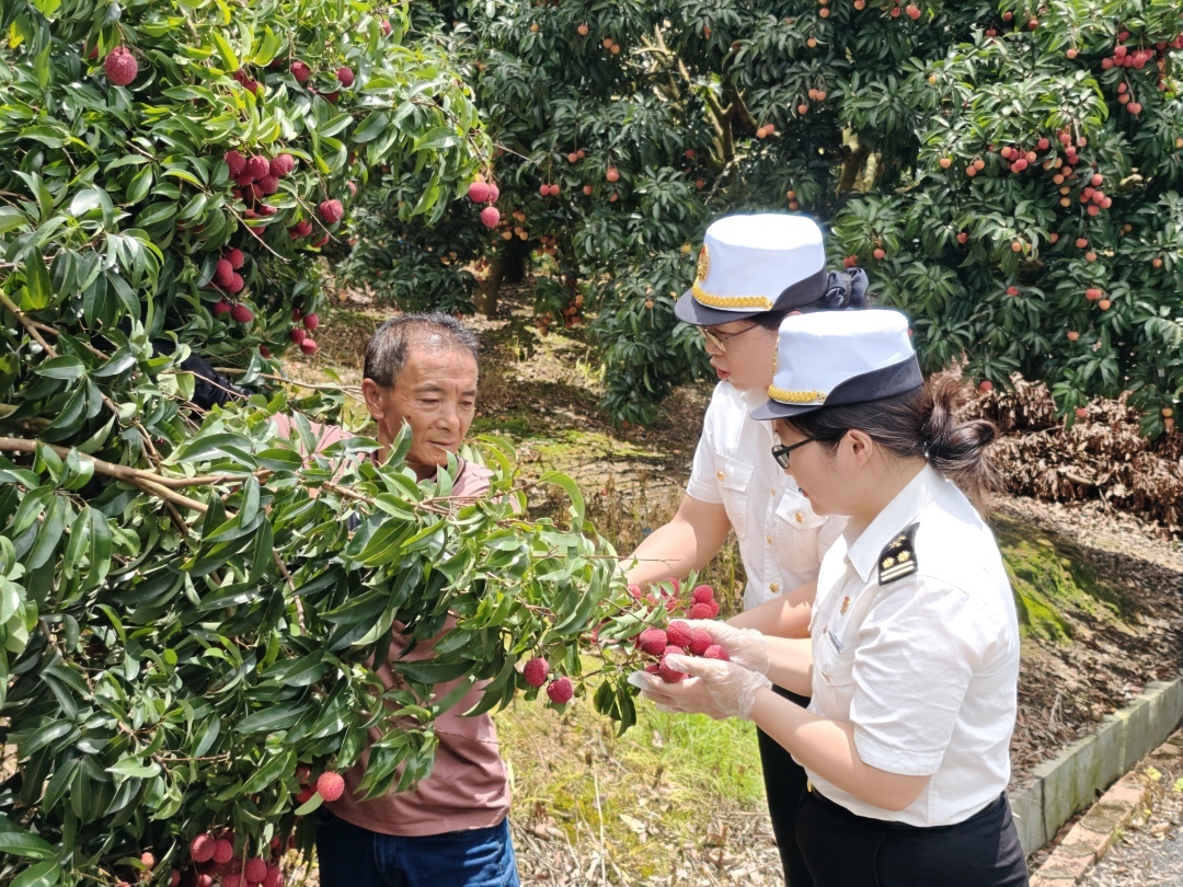 广州海关所属从化海关关员在荔枝果园开展日常监管。