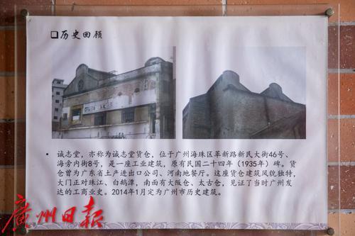 诚志堂,亦称为诚志堂货仓,位于广州海珠区革新路新民大街46号、海旁内街8号,建于清末,民国时期重建。