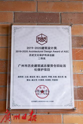 位于白鹅潭东南岸的诚志堂,与太古仓、日清仓、花地仓等共同构成珠江后航道工业遗产群。这座有着百年历史的仓库经历了兴盛、破败,也获得了改造、新生,如今已经成为珠江边上一座极具特色的幼儿园,传出孩子们的欢声笑语。诚志堂的靓丽变身是近年来广州工业遗产活化利用的缩影,也是2020年3月《广州市促进历史建筑合理利用实施办法》正式印发实施后,广州第一例多功能利用且手续齐全的历史建筑活化案例,获得了2020年中国建筑学会建筑设计奖二等奖、2022年度广州市优秀工程勘察设计奖二等奖等奖项。