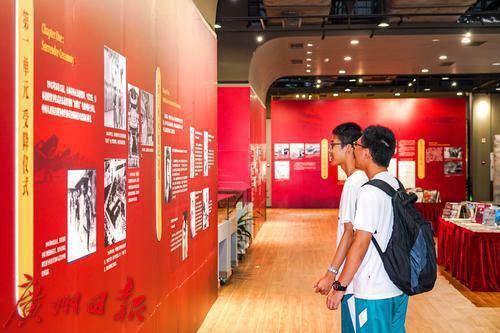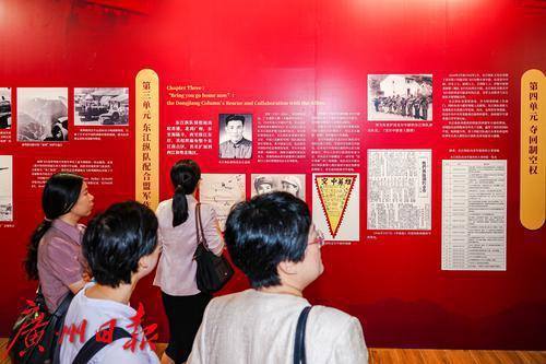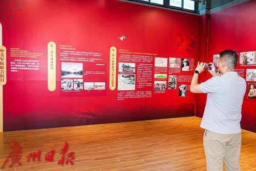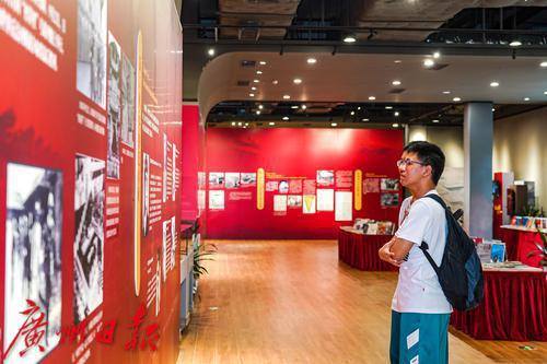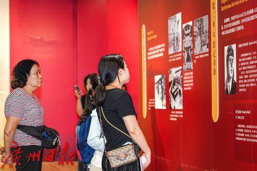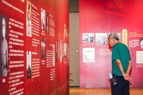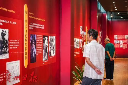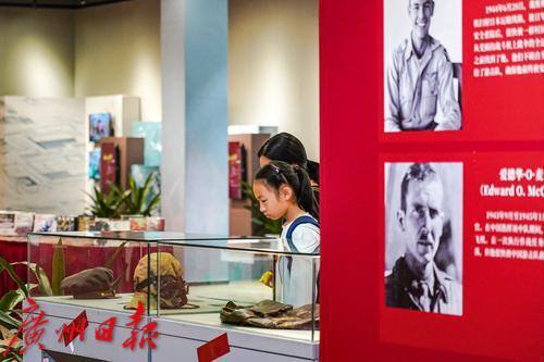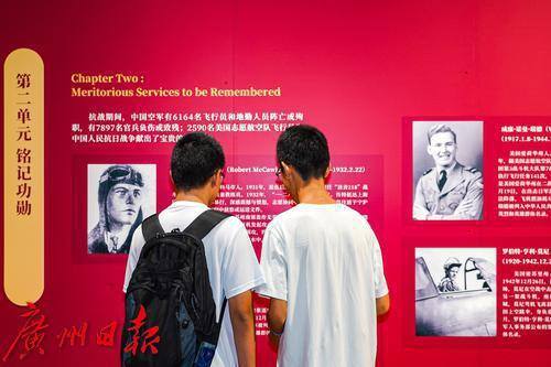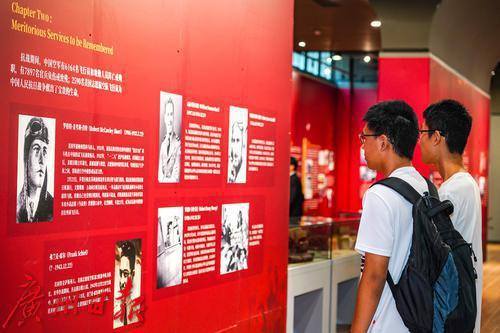 市民、读者在广东省立中山图书馆,走进展览厅,观看“铭记英雄——飞虎队在广东”历史图片展。
