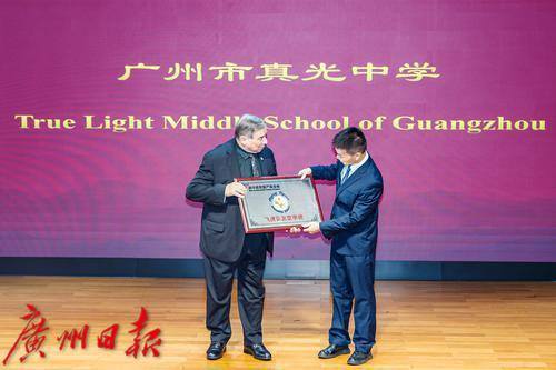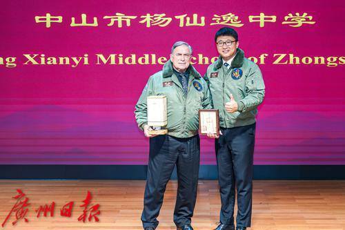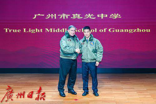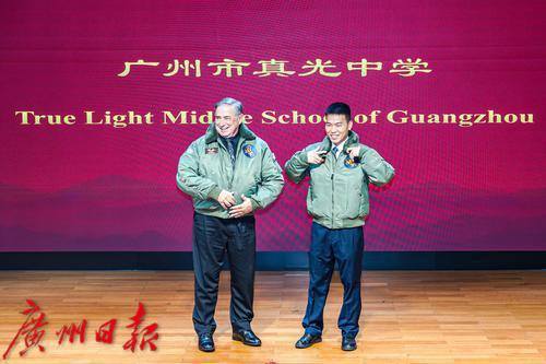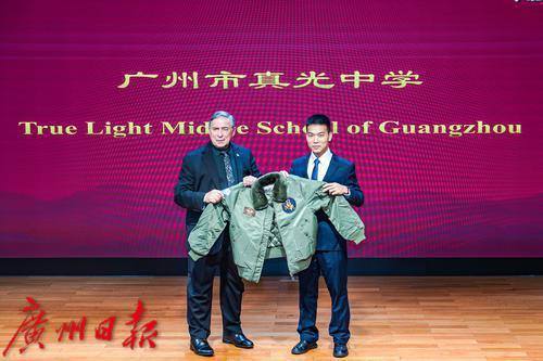 杰夫·格林为广州市真光中学授牌并赠送飞行员夹克