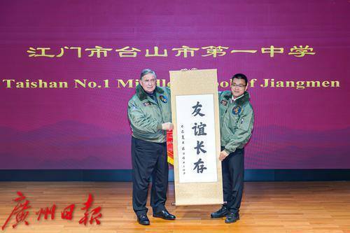 江门市台山市第一中学向杰夫·格林赠送“友谊长存”书法作品