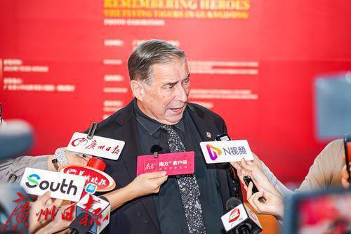 美中航空遗产基金会主席杰夫·格林接受媒体采访