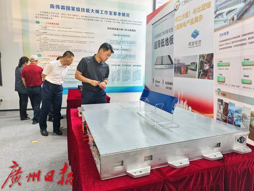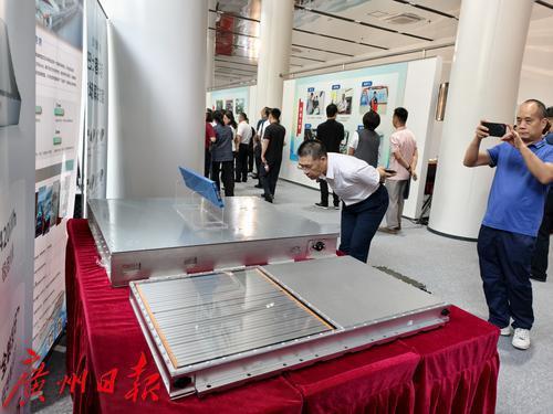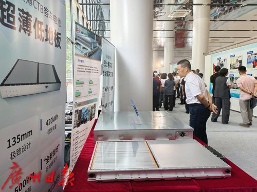 嘉宾在参观活动现场展出的超薄低地板客车电池。