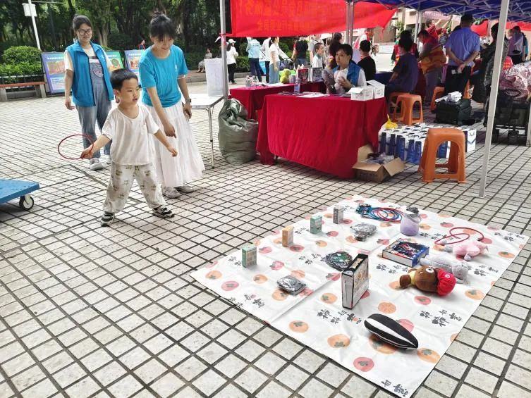 公益慈善区域提供旧衣回收区,组织居民捐赠衣物;爱心义卖区,陈列残障人士手工艺品、文具套装等;同步开展“慈善套圈”活动,居民可将义卖所得划入社区慈善基金或指定帮扶对象。