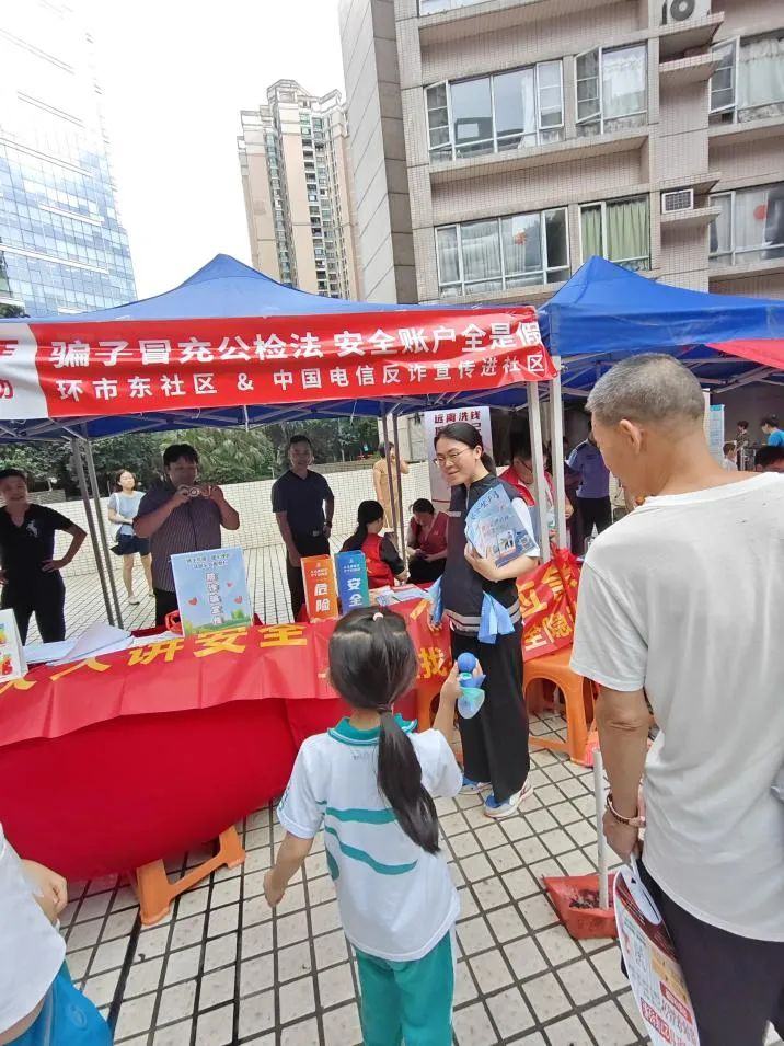 宣传咨询区域通过发放资料与现场讲解,开展防诈骗、消防安全、垃圾分类等知识科普;羊城家政、社区居委会服务摊位提供业务咨询,助力居民解决生活难题。