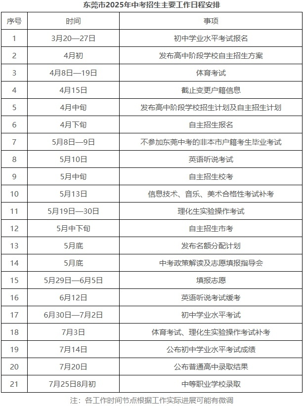 根据东莞市教育局印发的《2025年初中学业水平考试与高中阶段学校招生工作意见》,7月14日中考放榜,7月20日公布普高录取结果。