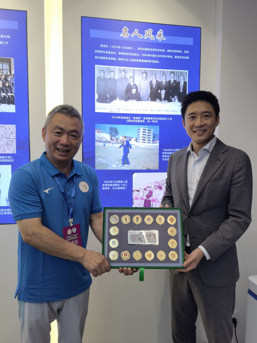 中国香港足球总会主席霍启山现身云秀山体育场,向老教练和小队员赠送足球。1984年,霍启山的祖父、中国香港爱国实业家霍英东先生在云秀山体育场重建落成举行的友谊赛上出席开球礼。如今,霍启山再访云秀山体育场,见证了一段时隔41年的超时空足球佳话。
